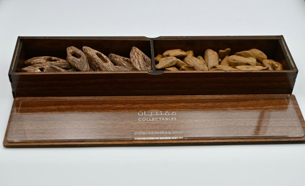 موروكي محسن و موروكي محسن مجوف، اوقيتان من العود المروكي المحسن الفاخر يمتاز بقوة الفوحان والثبات وفترة احتراق على الفحم تزيد عن عشرة دقائق بكسرات ذات حجم مثالي للاستخدام ومناسب للاستخدام الشخصي او المناسبات مغلف بعلبة هدايا مصنوعة من الخشب الممتاز.